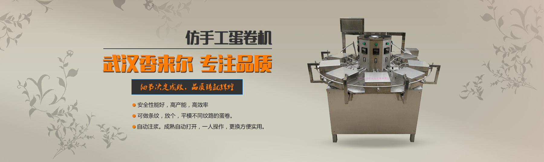武漢香來爾食品機械有限公司成立于2001年2月,是生產銷售休閑食品加工設備的廠家。公司緊跟市場潮流與華工、華農多名共同開發新穎、實用的適應市場需求的食品機械,自有車、刨、鉆、銑、剪板、折彎等先l進機床100多臺 套。7年誠信通會員,產品出口拉美、非洲、東南亞、歐洲等很多國家和地區,國內很多食品企業都是我們的合作伙伴。目前公司專門設立一個的售后 服務班子,在公司逐步發展強大的過程中,一直堅持售后服務的同步發展,精良的食品設...